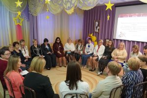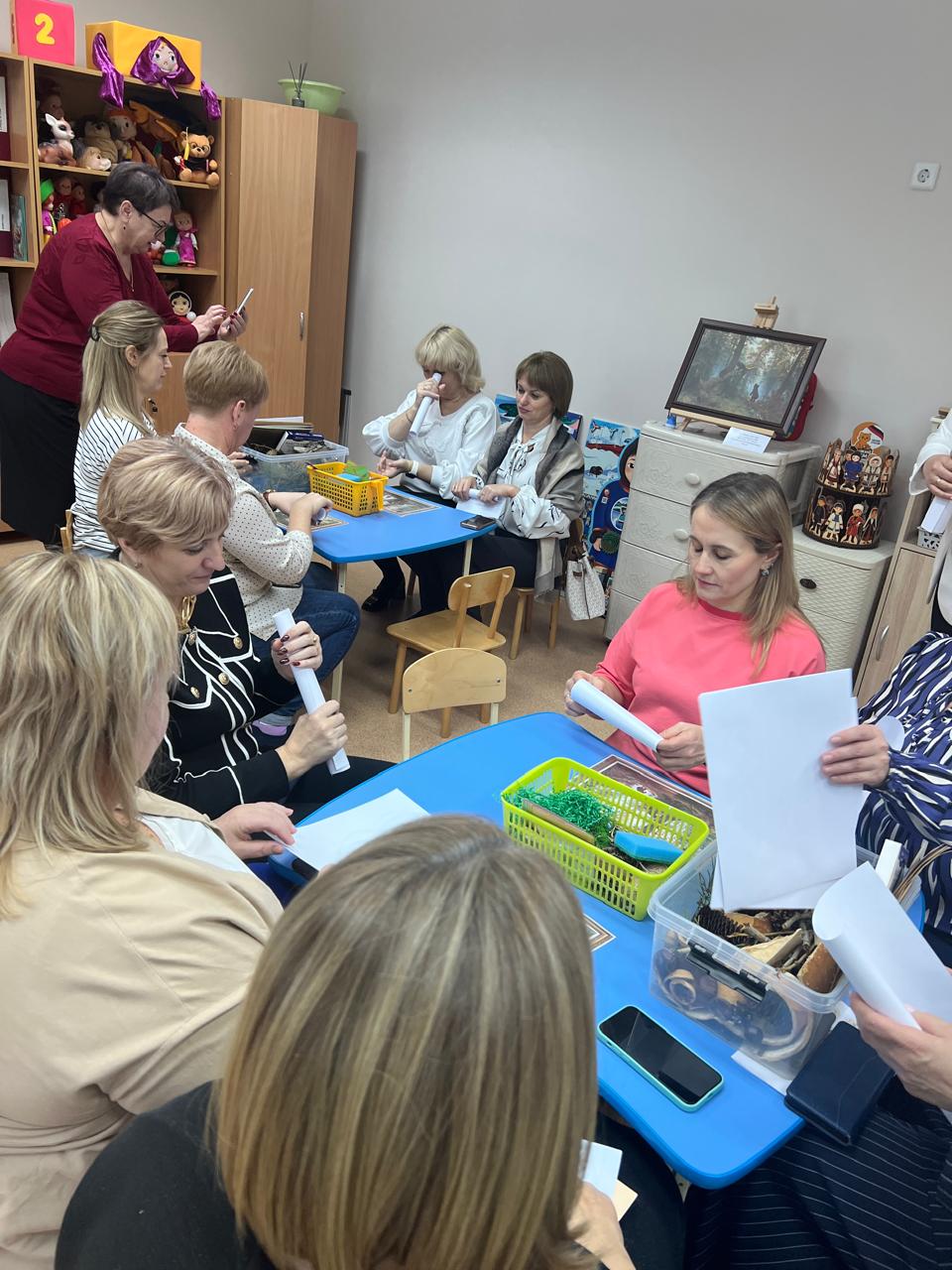 Педагогический коллектив детского сада представил гостям опыт организации развивающей предметно-пространственной среды и проведения занятий по развитию художественно-эстетических способностей детей. Вел семинар старший воспитатель Анастасия Константиновна Шумилова.