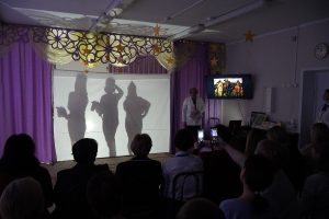 Музыкальный руководитель Ирина Викторовна Цыкоза совместно с педагогами представила театр теней «Магия света и тени». Гостям предложили угадать картины известных художников.