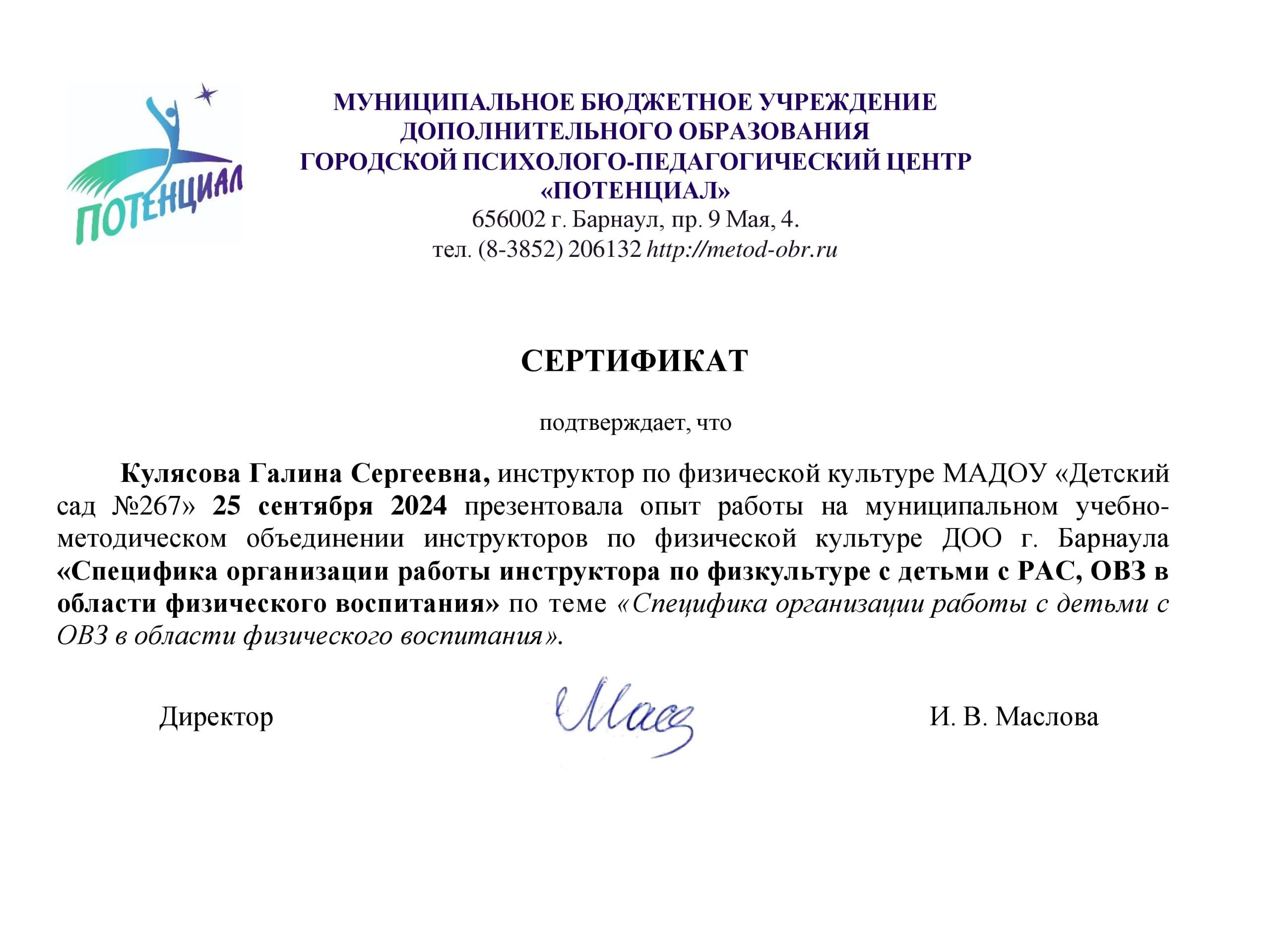 Муниципальное автономное дошкольное образовательное учреждение «Детский сад № 267»