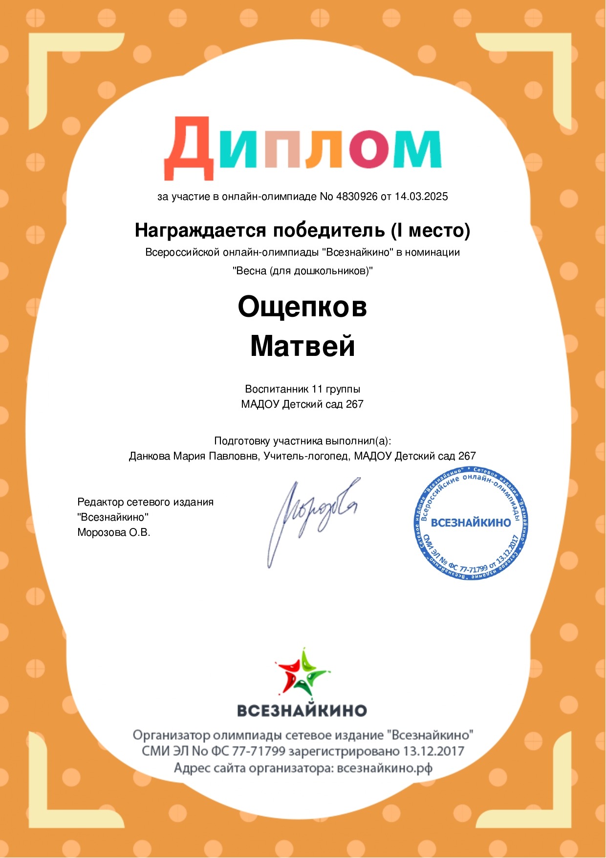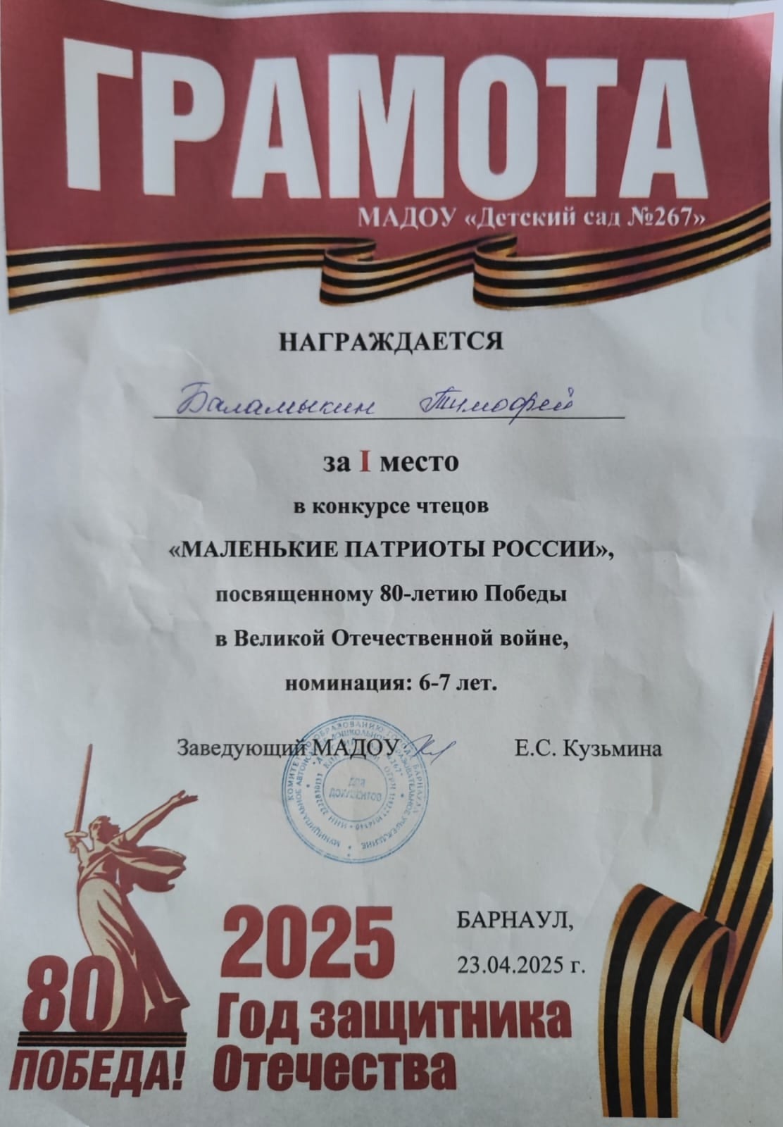 Муниципальное автономное дошкольное образовательное учреждение «Детский сад № 267»